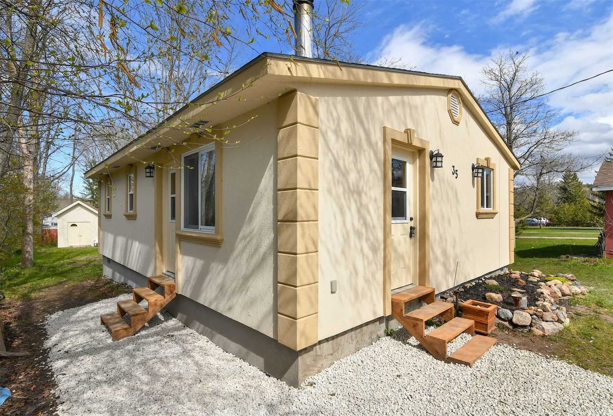 Enjoy the sounds of nature when you stay in this unique tiny house. This 600 sq ft home is nestled amongst 10 acres of towering trees, granite rock and trails to explore. The tiny home will not feel so tiny once inside. With high ceilings, plenty of windows, and surprisingly spacious rooms - it is the perfect hideaway for those wanting to unplug in Muskoka. The three season, screened in porch invites you to enjoy your coffee (or wine!) in nature without being bothered by the mosquitos!