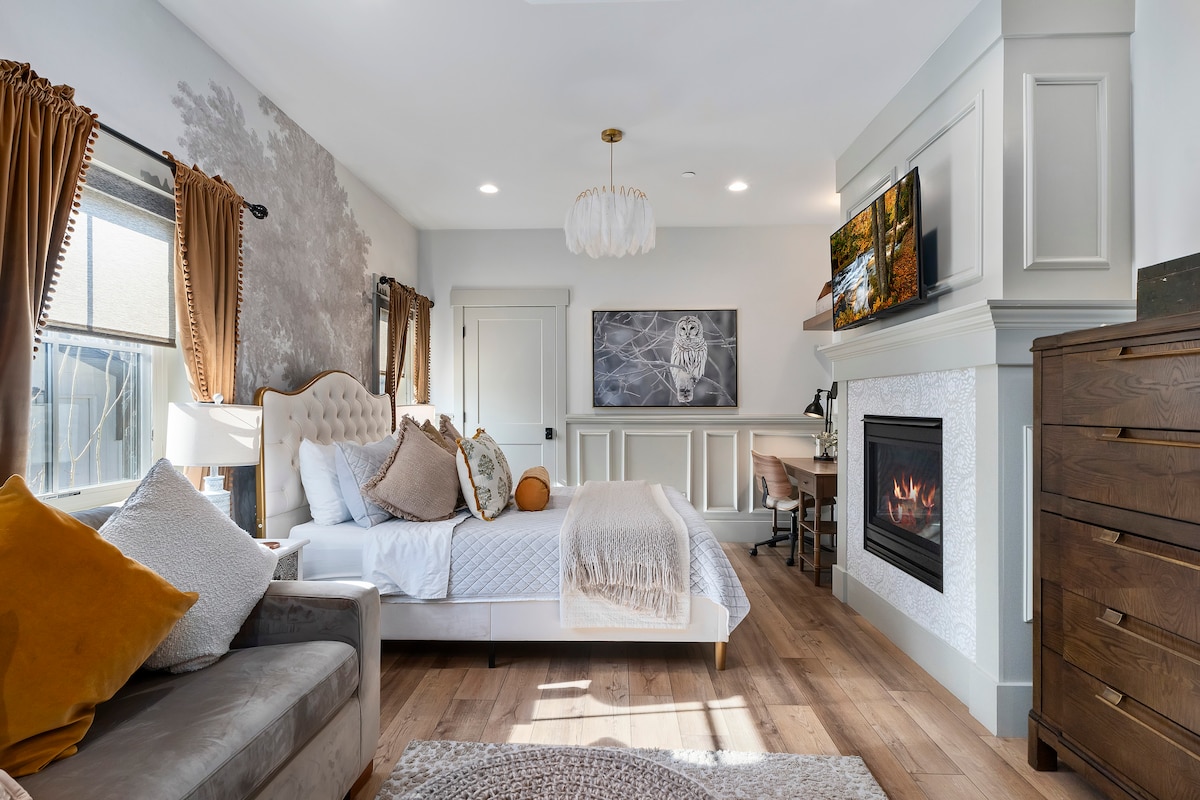 Welcome to Springer Farms in Midway! The Fox Room is a cozy studio loft with two queen beds, a modern bath with walk-in shower, and a living area with a gas fireplace. A full fridge and microwave add convenience, while local shops, dining, and mountain adventures are just steps away. Smoke-free with check-in after 4 PM, this inviting alpine retreat is perfect for couples, friends, or families to relax, recharge, and embrace the spirit of the fox.