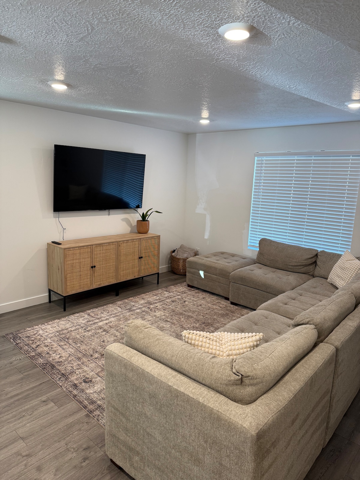 This spacious Boujee Basement is perfect for the whole family with a private entrance, full kitchen and big screen TV. Fifteen minutes from the Provo Airport and a five-minute drive from the freeway, our place is near Sundance, Brigham Young University (BYU), Utah Valley University (UVU), Hobble Creek Canyon & golf course, and Bartholomew Park. Free WiFi, full kitchen, full bath, coffee/tea bar, washer/dryer, TV and air conditioning. Self check in to basement entrance with Smart Lock.