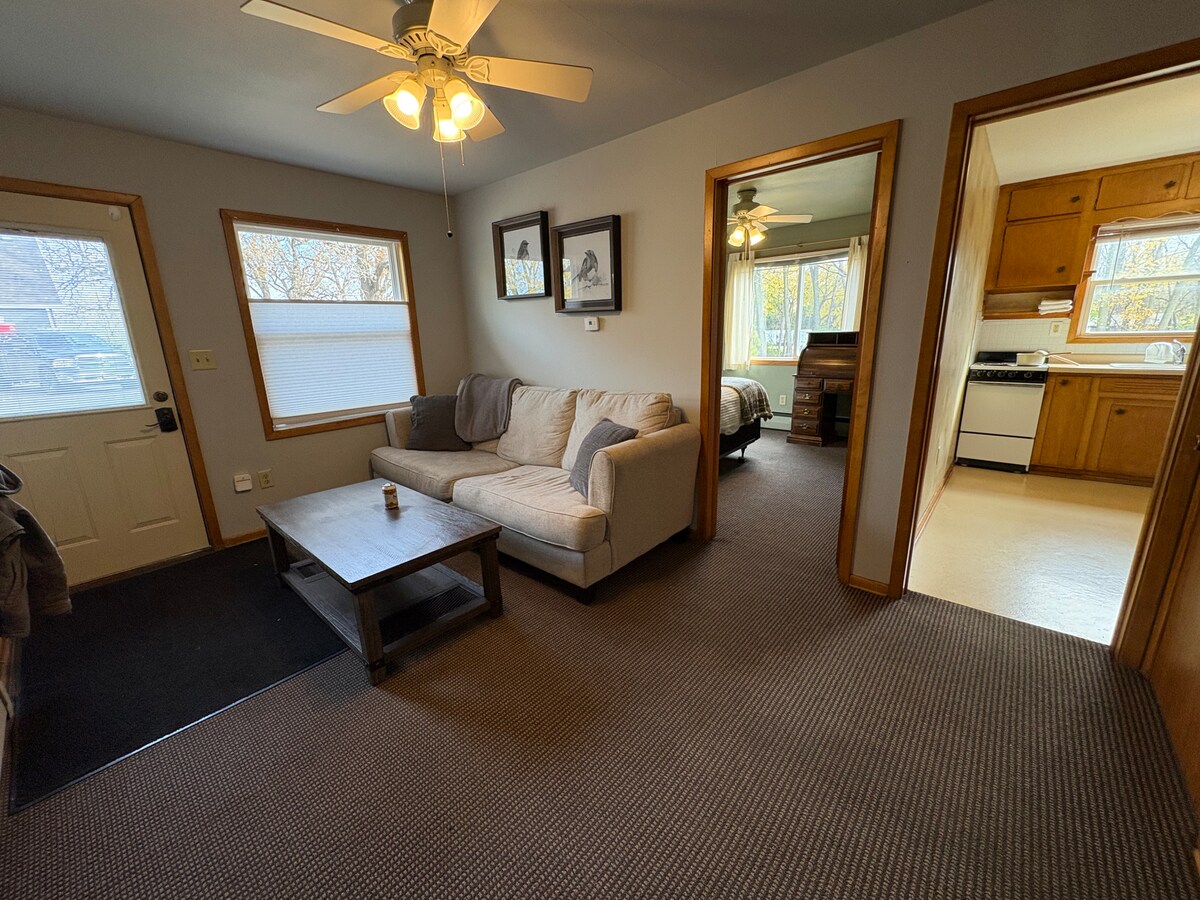 Enjoy a unique experience at this centrally-located place. Located in southern Minnesota in a historical building in a downtown setting, this 1-BR space is perfect for a quick stay or lengthy visit for up to 2-3 people.