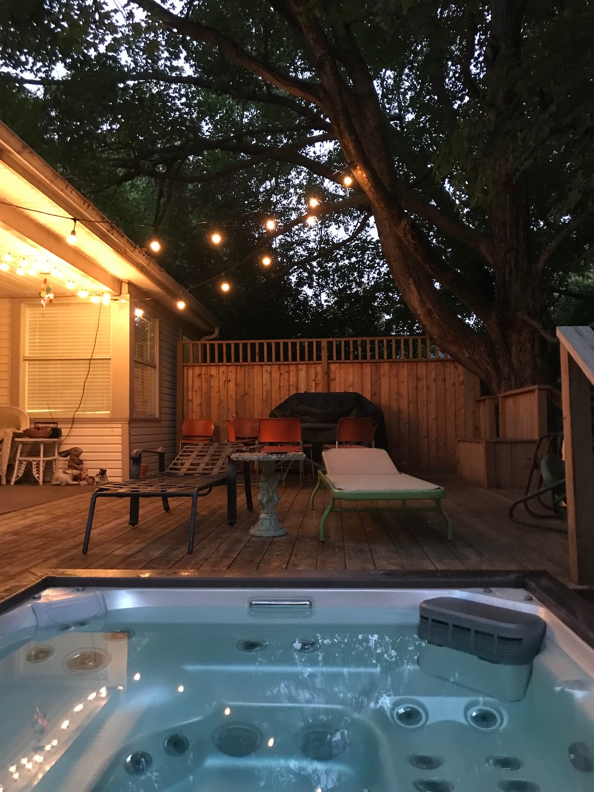 Whether you're a couple looking for a romantic getaway, or family and friends desiring a fun experience, this home has it all! The property is in a wooded subdivision of East Fayetteville. It’s about a 30 minute drive to the UofA. You'll enjoy two bedrooms and two full bathrooms. Downstairs you'll find a comfy living room and fire place, a large kitchen table and a game room! Outside on the enclosed porch, you'll enjoy a HOT TUB, a movie projector and a custom firepit area beyond the deck.