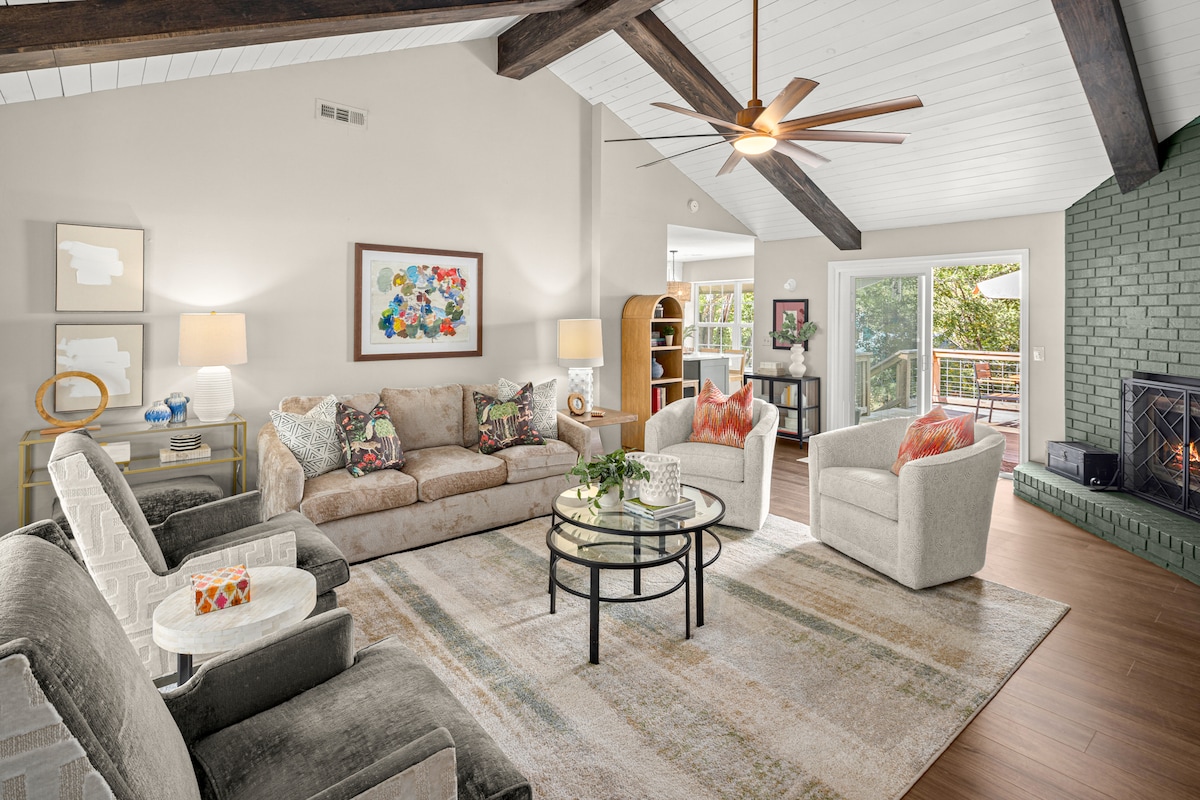 Welcome to our Art House! This 1955 home has been stripped down to the studs to make our redesign come to life and we are excited to share it with you. Set on an acre in downtown Fayetteville, our house offers you an unbeatable location that is both downtown and feels secluded, two master bedrooms, and a back porch that overlooks the sunset. We have also curated a collection of local artists featured throughout every room of the house. This home is a part of the @boutiqueairbnbs collection!