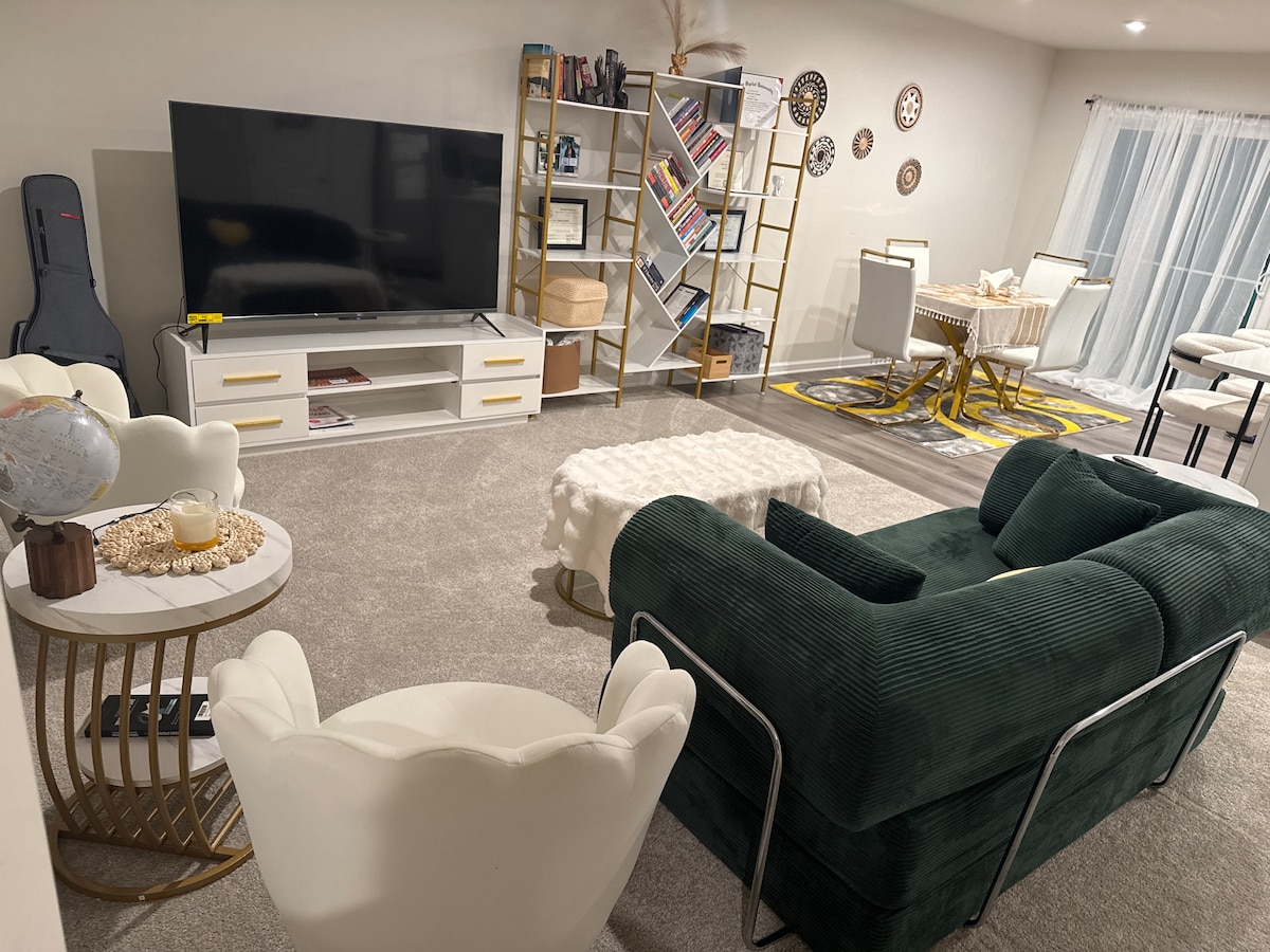 This thoughtfully arranged basement apartment has a private entrance for added comfort and independence. It includes 2 private bedrooms, each with closets, an adjustable-height desk, and a computer chair; 1 full bathroom with all essentials, a fully-equipped kitchenette with sink, microwave, and refrigerator, a cozy living room with a smart TV and free high-speed internet. This peaceful suburban home is just 15–30 minutes from Hagerstown, Winchester, and Frederick, and only 1h:15 min from DC.