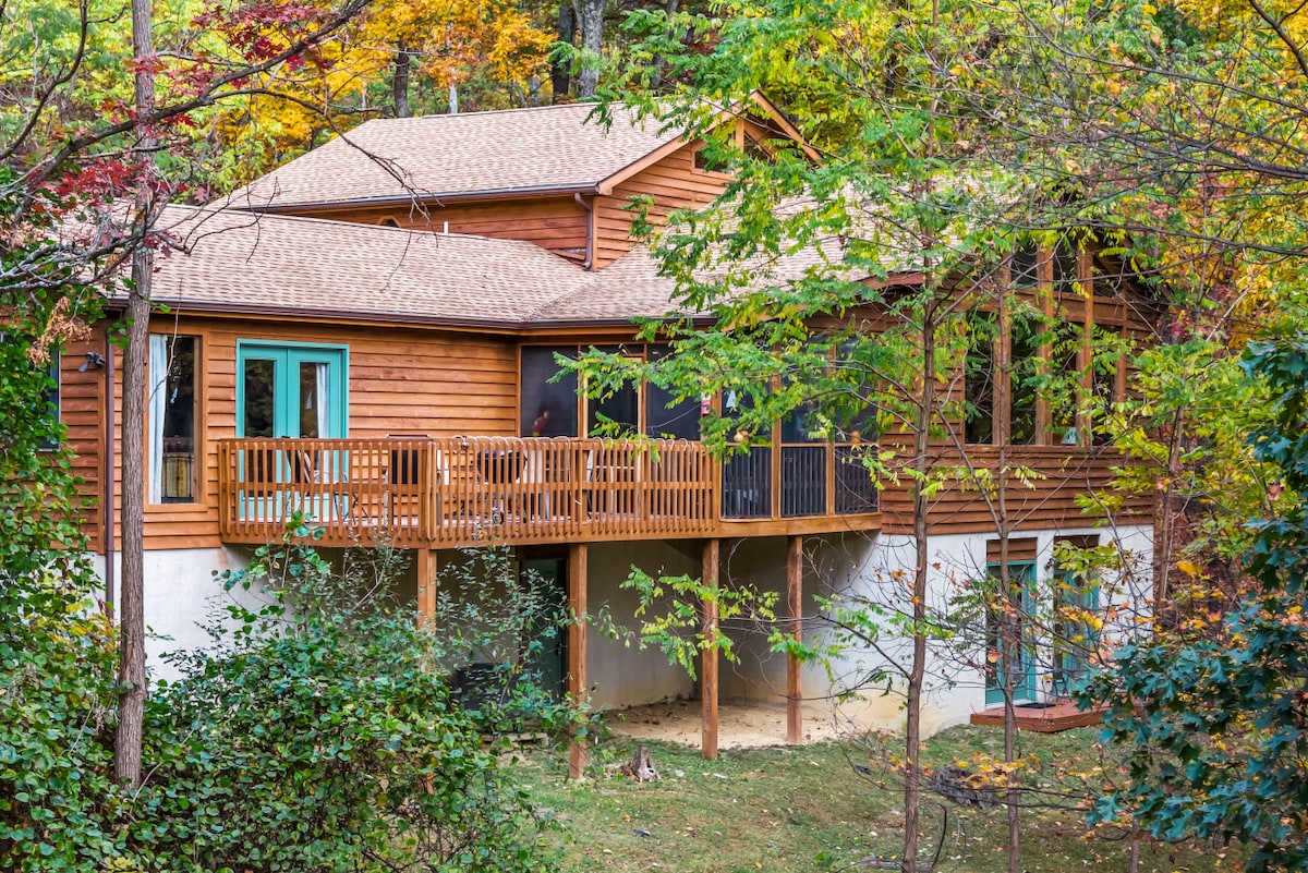 MOUNTAIN MAMA VACATION HOMES & CABINS Explore historic Harpers Ferry while relaxing in our newly renovated, riverfront chalet. This family-friendly home is the perfect quiet escape for you and your children with multiple decks equipped with firepits and opportunities for kayak adventures on the Potomac. Even in cooler weather, hot tub dips, sauna sessions, and a cozy indoor fireplace make this the perfect spot to unwind