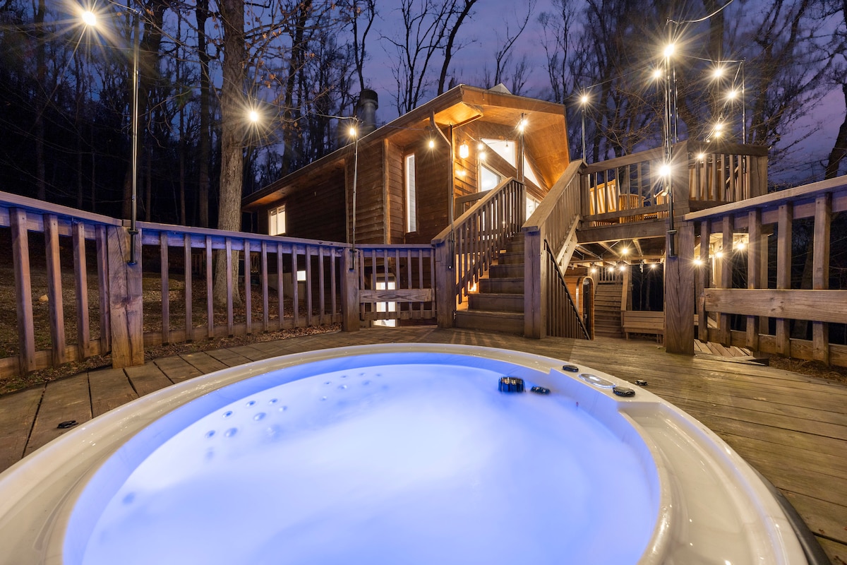 Get the most out of wild & wonderful West Virginia in this newly-renovated log cabin 20 minutes from downtown Berkeley Springs. Enjoy the wooded views from the expansive front porch, make s'mores around the stone fire pit, soak in the hot tub in the enclosed sun room, curl up with a book in front of the wood-fired stove, and get cozy in the movie theatre-like loft. You will have access to a private lake and incredible hiking trails minutes from the cabin.