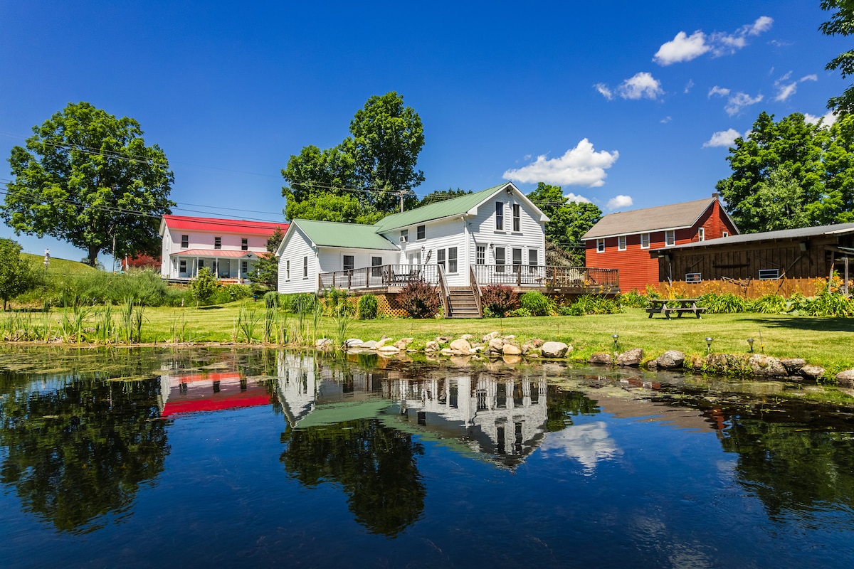 The East Cabin is quietly tucked between the beautiful Green Mountains of VT and the gorgeous Adirondacks of NY. Soak up the morning sun on your private stone patio while mother nature comes to life on the pond and fields. Take a day trip to beautiful Lake George or Historic Saratoga Springs. Grill steaks on BBQ and eat S’mores by the campfire at night. For the winter season, there are many major ski resorts close by. We also have the West Cabin available for your extended family and friends.