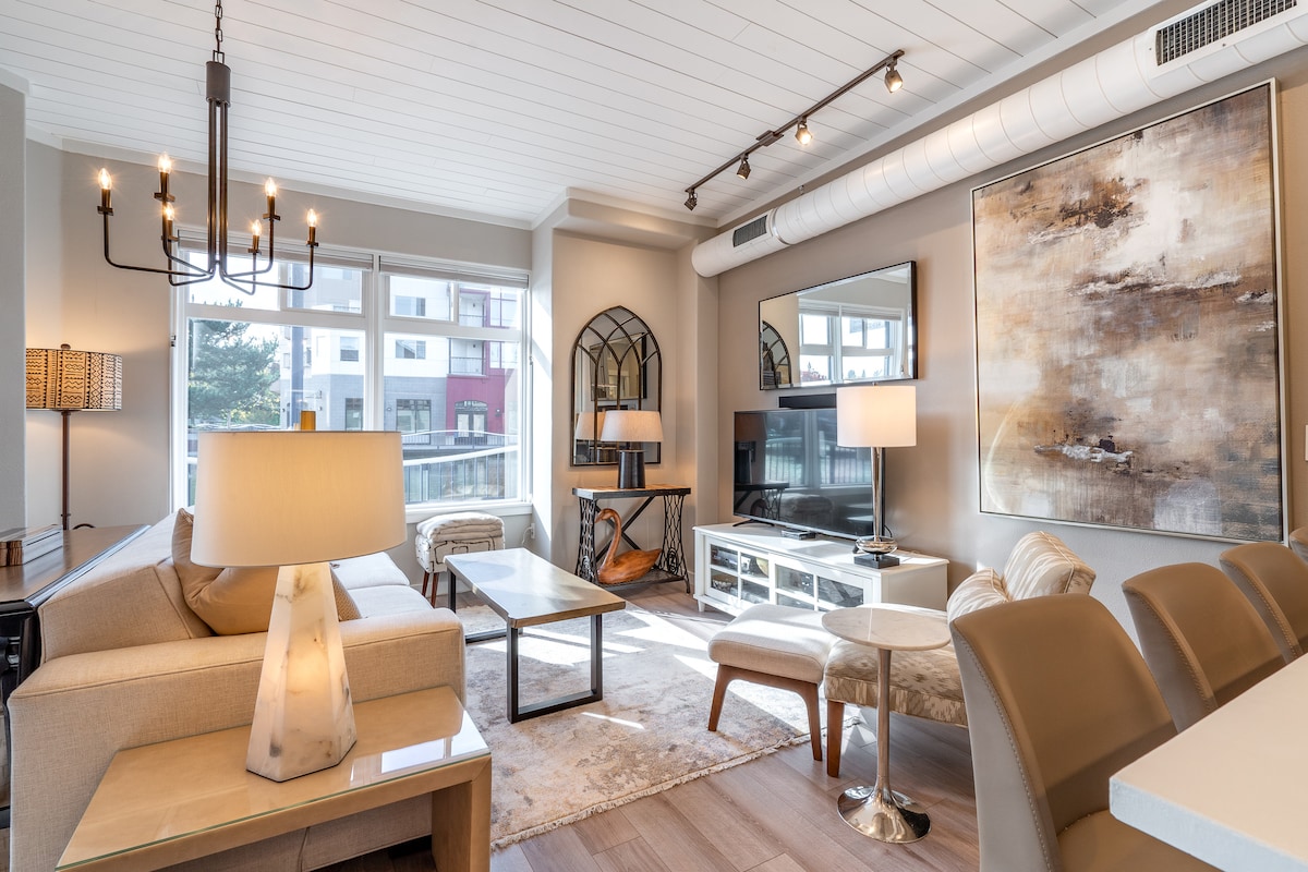 This one-of-a-kind industrial loft features a kitchen fit for a gourmand, commercial appliances, eating bar, sleeper window-seat, gas fireplaces, washer, dryer & walk-in closet. Furnishings include king bed, articulating 60" 4K TV, & drafting desk work area. Located in the heart of Orenco Station, just up the road from Nike & surrounded by Intel's three primary fab plants. 9 dining establishments, 4 parks, New Seasons & light rail within 1/4 mile. Enjoy cosmopolitan living at its finest.