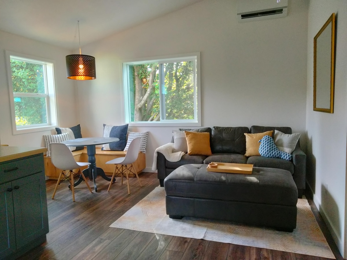 Our little cottage is 280sqft with its own entrance and parking. It is a studio with a kitchenette and features a full bathroom with a large shower. We have a full size Murphy bed for 2 as well as a sofa. Our bernedoodle, Alyena, and our cats are always eager to welcome you. The dog is quite vocal but super friendly and just wants you to throw the ball for her, preferably all day long. We’re flexible about check in, just message us.
