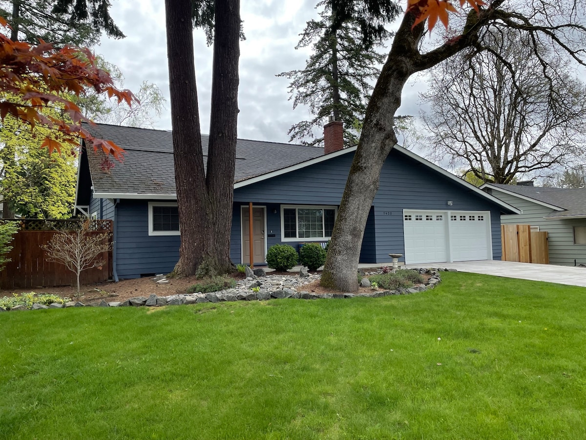Conveniently located in the NW suburbs of Portland, enjoy this remodeled book lovers retreat decorated in mid-century modern style. Relax inside or in the private back patio or stroll the sidewalks in a lovely neighborhood of residential single and multifamily homes. Also, it's well located with quick access to the freeway, Intel and Nike, and shops, grocery stores and restaurants.