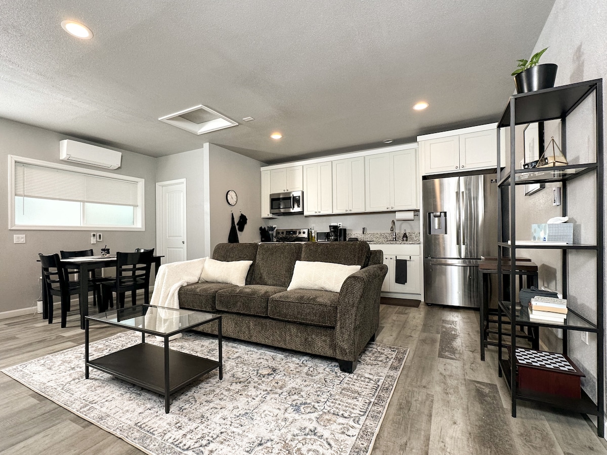 This comfy cottage was designed and built with short-term rental in mind with special features and amenities not typically found in your average listing. Your private entrance welcomes you to a 700 sq. ft. space you can call your own with everything you need for a relaxing stay. The space is ideal for 2 people but can easily sleep up to 4. Heated bathroom floor and gas fireplace provide warmth during the cooler months. Big windows for daylight & views. Backs to a greenspace. Two bathrooms.