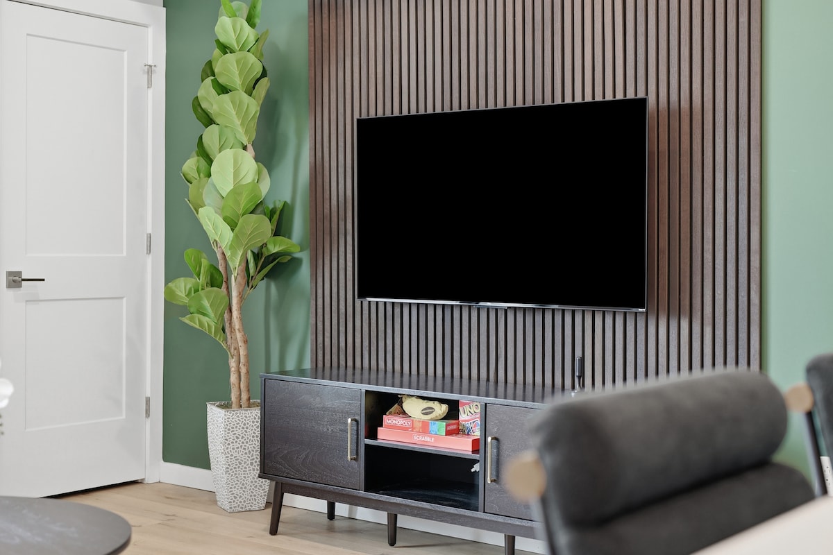 Enjoy a stylish experience just steps from all that lawrenceville has to offer! 5 star restaurants, boutiques, and gastropubs! You will love having easy access to wifi as well as Prime video on the 60 inch TV! Fully equipped kitchen is at your service as well as delicious complimentary coffee! Dive into your push queen sized bed for a fantastic night sleep! Enjoy the shared sauna as a way to relax and reap the health benefits of heat therapy!