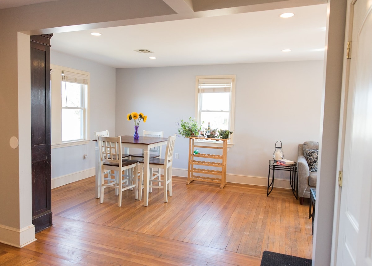Superhost 7+ years! Modern in-town farmhouse is walkable/bikeable to everything in Wakefield and just 2.5mi to Narragansett Beach! Public park with pickleball & tennis, nature trails & bike path right at your door. Perfect getaway for 1-4 guests. Enjoy local beaches, marinas, shops & dining, breweries, events/festivals and recreation all within minutes. Easy access to URI, Amtrak, Block Island & Martha's Vineyard ferries, Jamestown, Newport and more. Providence/TF Green airports 25-35min.