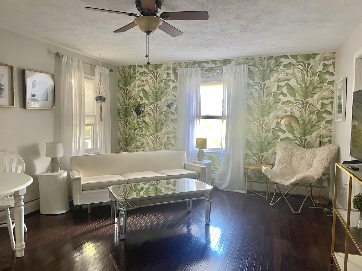 Superhost 7+ years! Modern in-town farmhouse is walkable/bikeable to everything in Wakefield and just 2.5mi to Narragansett Beach! Public park with pickleball & tennis, nature trails & bike path right at your door. Perfect getaway for 1-4 guests. Enjoy local beaches, marinas, shops & dining, breweries, events/festivals and recreation all within minutes. Easy access to URI, Amtrak, Block Island & Martha's Vineyard ferries, Jamestown, Newport and more. Providence/TF Green airports 25-35min.