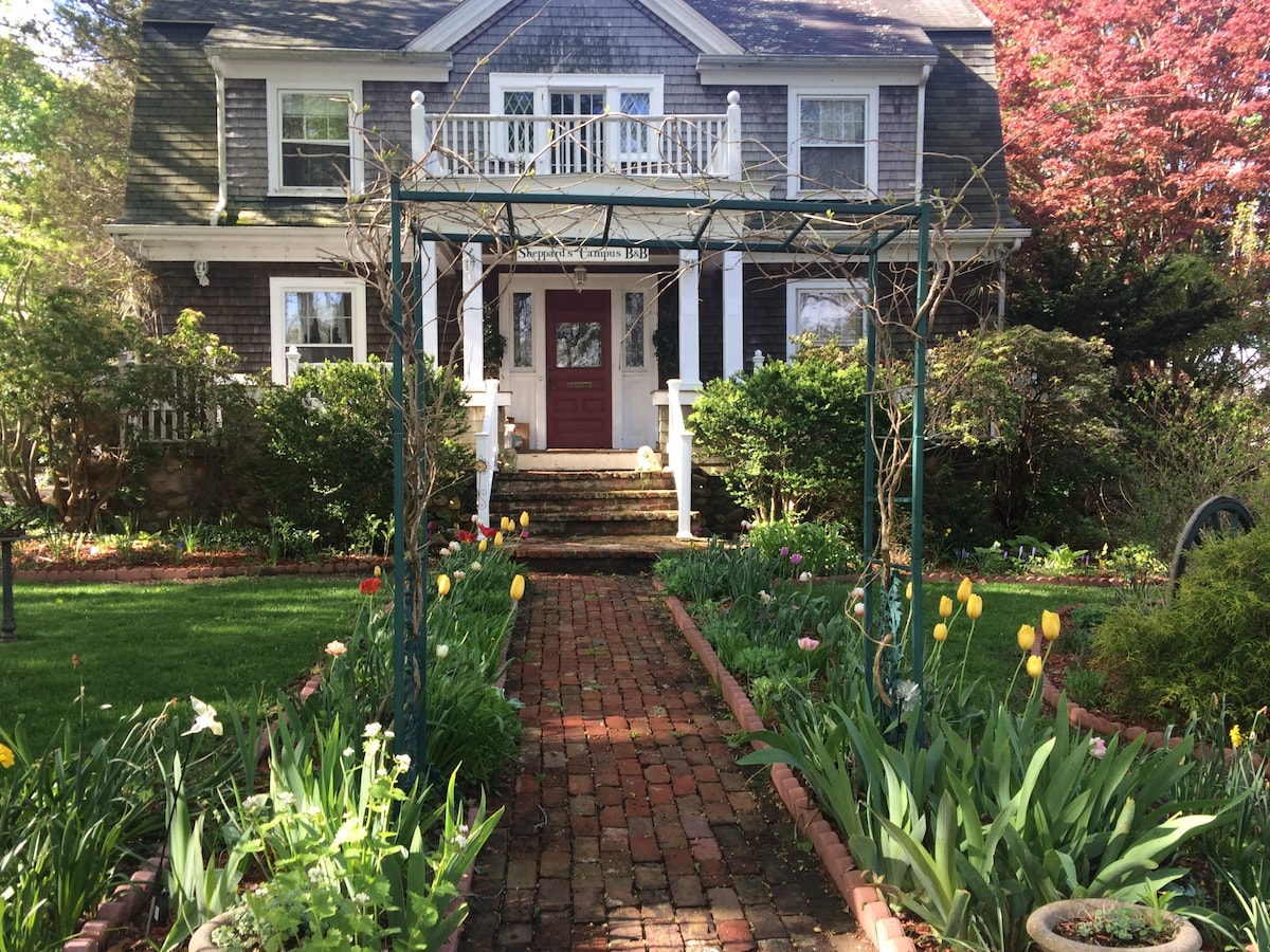 A charming B&B just off the University of Rhode Island campus, and close to restaurants, the South County Beaches and a short drive to Newport and Providence. Enjoy gardens, decks, and a sunroom. Great for alumni, visiting faculty, parents, and University guests. Families (with kids) and furry friends (pets) are always welcome. Room 1 has a queen bed and private bath and a full breakfast is always included.