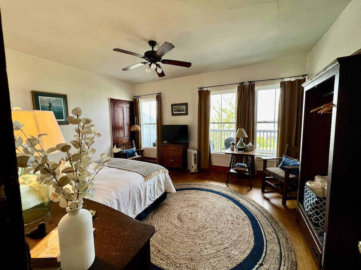 RECENTLY UPDATED! The Old Bakery Inn 2 bedroom suite features 1 King bedroom and 1 Queen bedroom with 1 bathroom. New plush bedding, pillows and duvets. Coastal decor and updated TV's and other amenities. Private deck with afternoon sun or enjoy views of Old Harbor from waterfront balcony. Watch the ferries come and go. Located in the heart of downtown and walking distance to the shops, restaurants, bars and beaches. Beach chairs and towels provided, pet friendly.