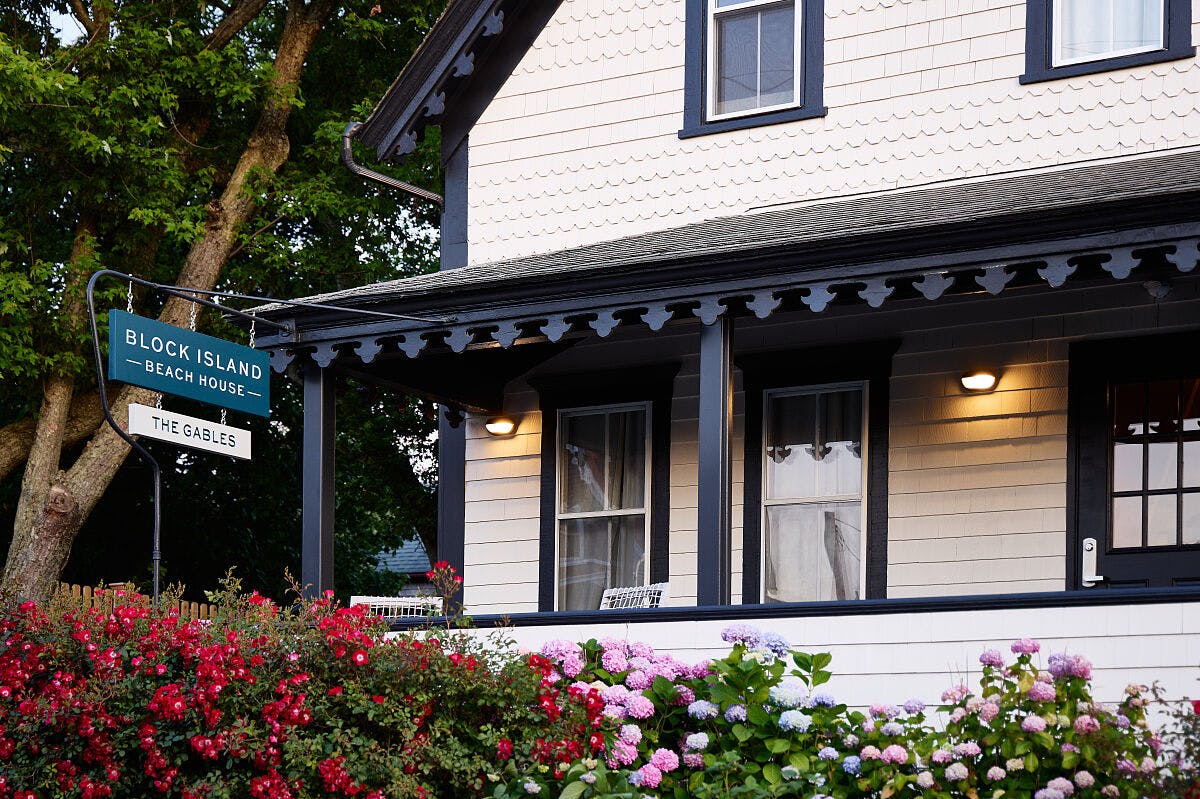Block Island Beach House offers one Queen Suite at Gables, with a bit more space than our Queen deluxe rooms. A central modern bath with a walk-in shower divides the space into two separate areas — on one side is a bedroom with a plush queen bed and upholstered armchair, on the other is a comfortable living area with a couch, coffee table, and flatscreen TV. This room accommodates a total of two (2) guests.