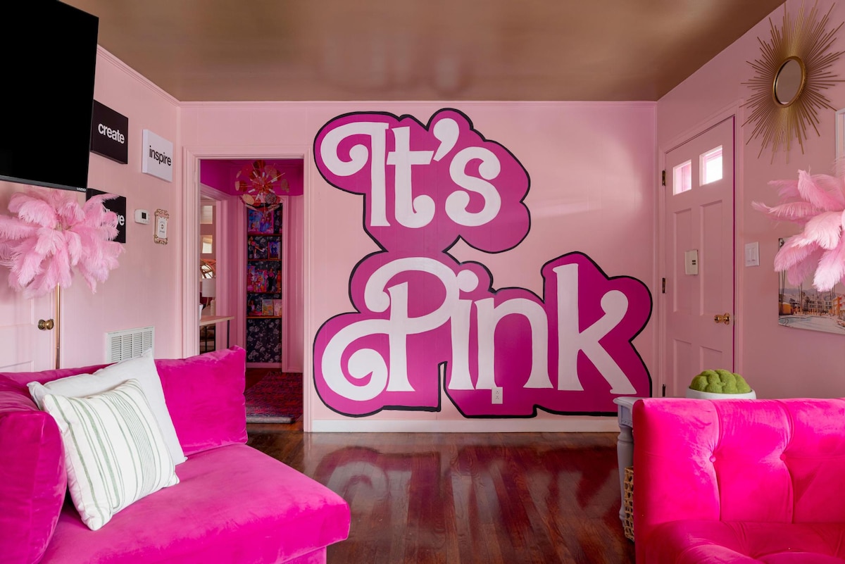 Stay at the centrally located Pink Mimosa House, a vibrant neon field home near downtown Johnson City. Sleeps eight with 5 beds (1 King, 2 queens, 2 twin) Enjoy colorful, themed rooms, photo worthy spaces and a cozy front porch perfect for girls trips, family, vacations, and friends getaways close to restaurants, breweries, and local adventures. Includes a fully equipped kitchen making meals easy to prepare and coffee to enjoy.