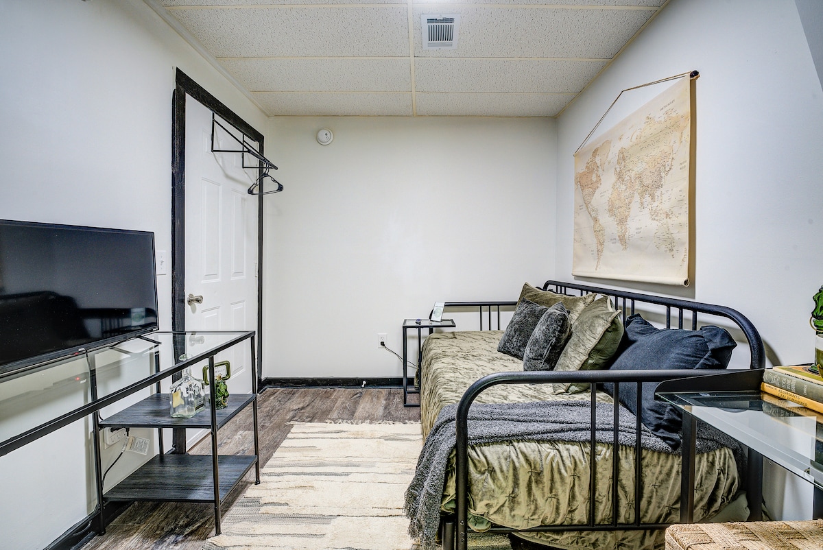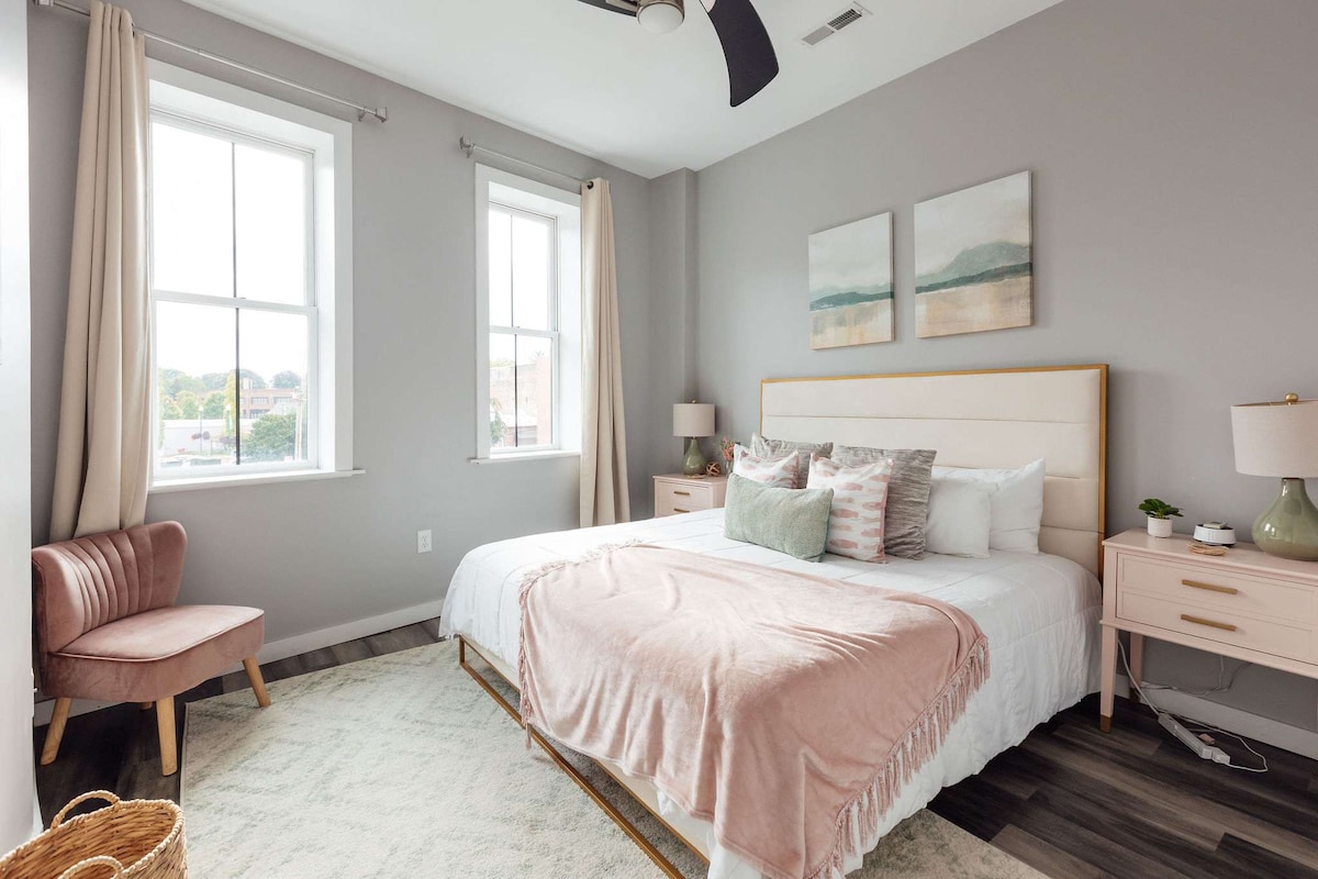 It's all about the little details when checking out the London Lofts! This studio apartment is centrally located right in the middle of Downtown Johnson City. This home features a basic gym, an elevator, shared common laundry room, indoor bike storage, an additional single memory-foam folding bed, and mountain views! There are several free parking lots around this home, and there is even a space to allow guests to unload close to the door and get checked in / unloaded before parking!
