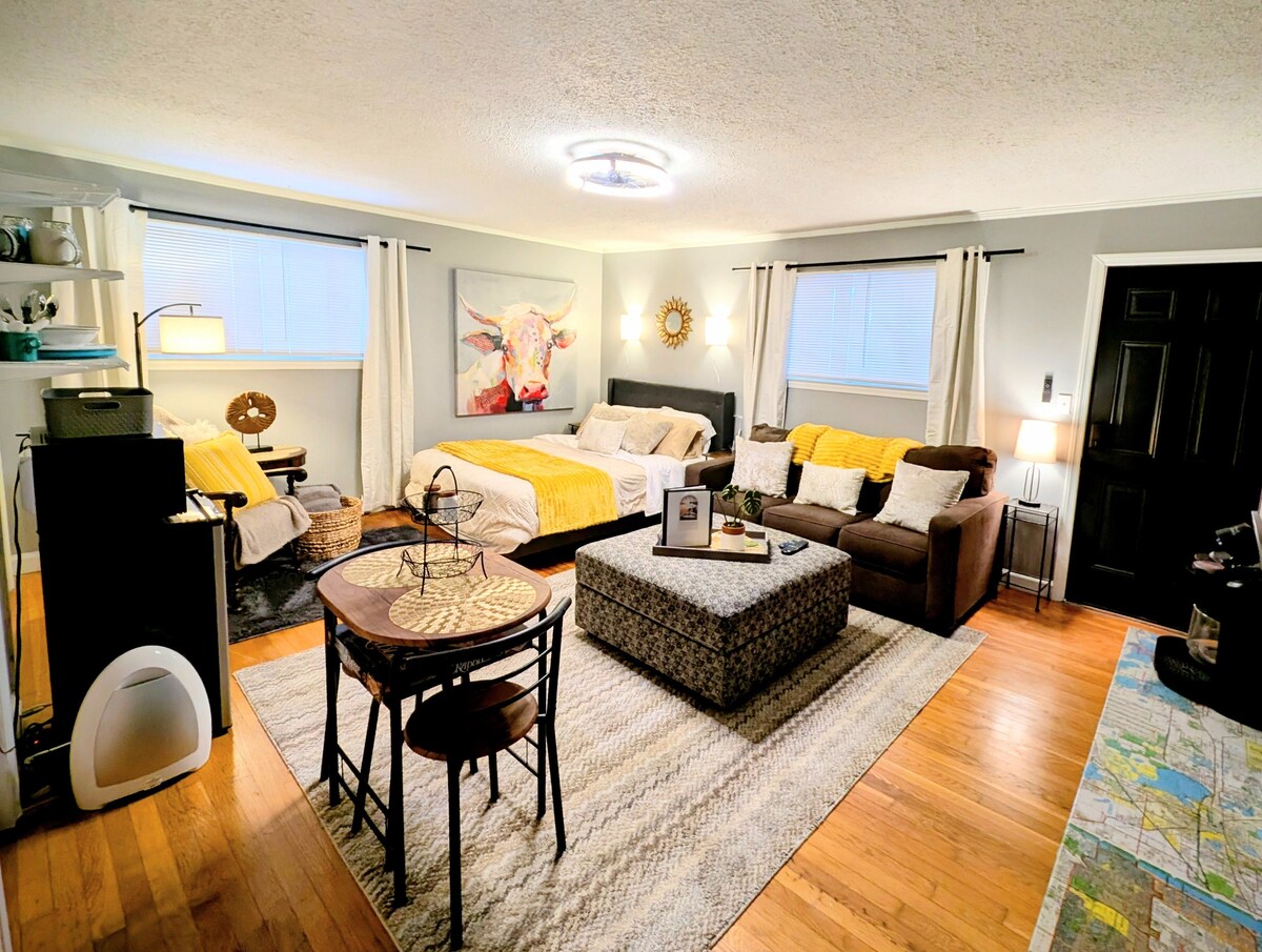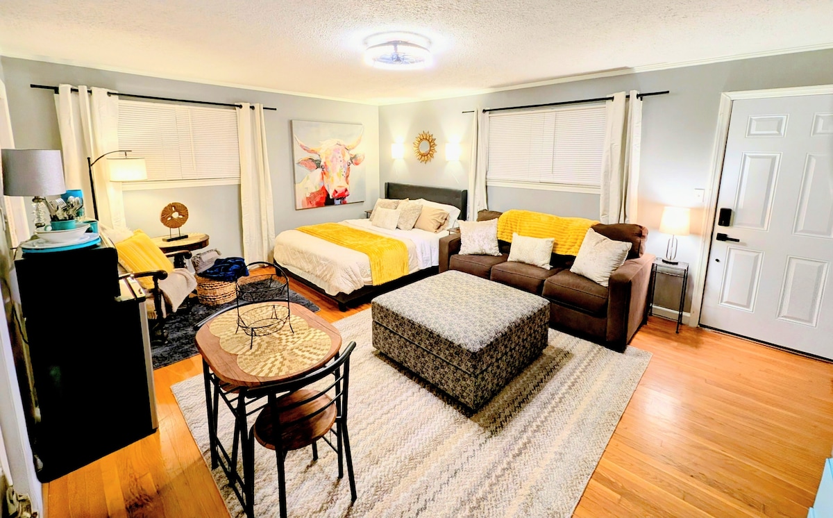 Your private oasis! Enjoy a private studio featuring a comfy full bed with plush linens, Temperpedic pillow & blackout curtains. You have your own private bathroom and private entrance with 24/7 keypad entry. Enjoy a workspace with fast WiFi, microwave, fridge & free snacks. Right across the street from ETSU. A lovely walk to downtown Johnson City via the Historic Tree Streets’ tree-lined streets. Many restaurants, bars, cafes in walking distance + downtown is a 2 minute drive away.