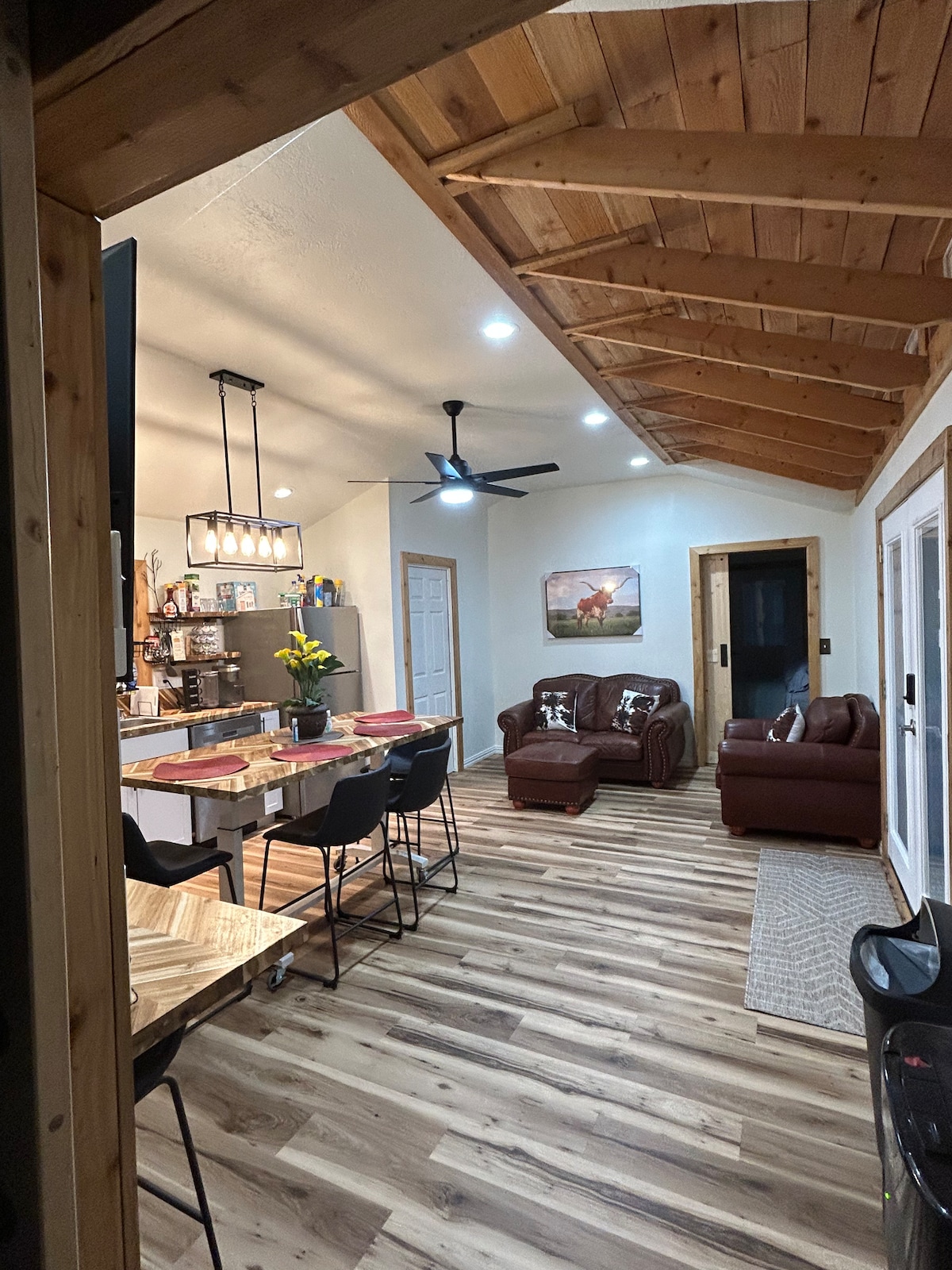 Milk & Honey Ranch blends tranquil farm life with luxurious, resort-style amenities. Enjoy animal encounters, five-star activities, and total relaxation. Just 15 minutes from Round Top/Brenham/Burton and an hour from Houston and Austin, it’s the perfect escape. Cozy Villa retreat with open-concept design, lounge area, large TV, fully equipped kitchen, and Keurig coffee essentials. Nestled among trees for a serene, relaxing escape.