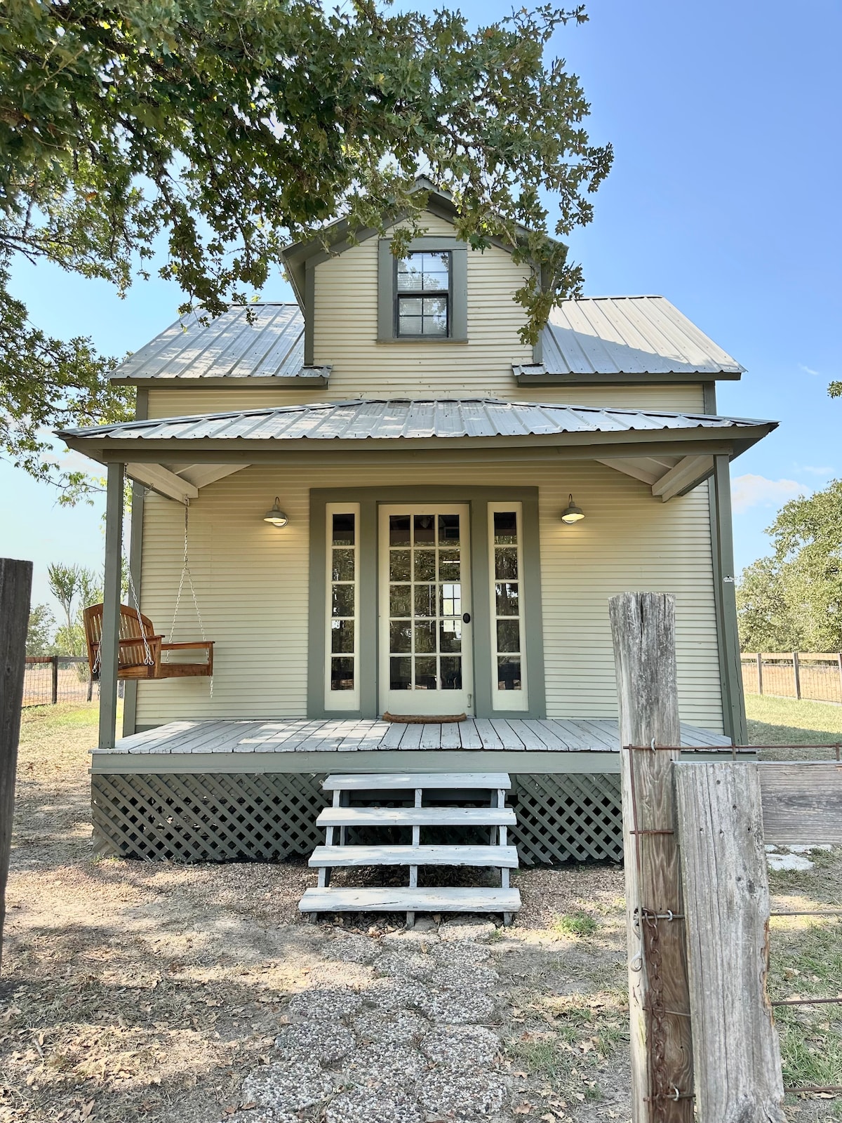 Welcome to The Casita a peaceful, private retreat where you can enjoy quiet country mornings just minutes from downtown Brenham. Start your day with coffee on the patio, watching the chickens roam beneath native pecan trees, and unwind in a space designed for comfort and relaxation. Spacious full-size bathroom and shower Large private yard surrounded by pecan trees Front porch, separate deck, and outdoor fireplace Quiet, relaxing atmosphere,perfect for couples.
