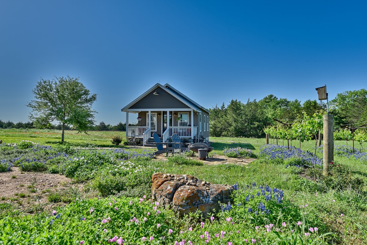 The Vintage Round Top - Boho Cottage ★ Luxury Rental Featured in Over 250 National Publications and Travel Guides ★ Soaking Tubs, Private Patios, Vintage Decor from Paris, Provence and Amsterdam ★ Private, Covered Wood Deck Overlooking Pasture with Weber Gas Grill, Roku TV's ★ Dining Table for 8 • Gas Fireplace! • Fully Equipped + Stocked Kitchen ★ Handmade Stearns & Foster Super Plush Pillowtop Mattress & Blackout Curtains