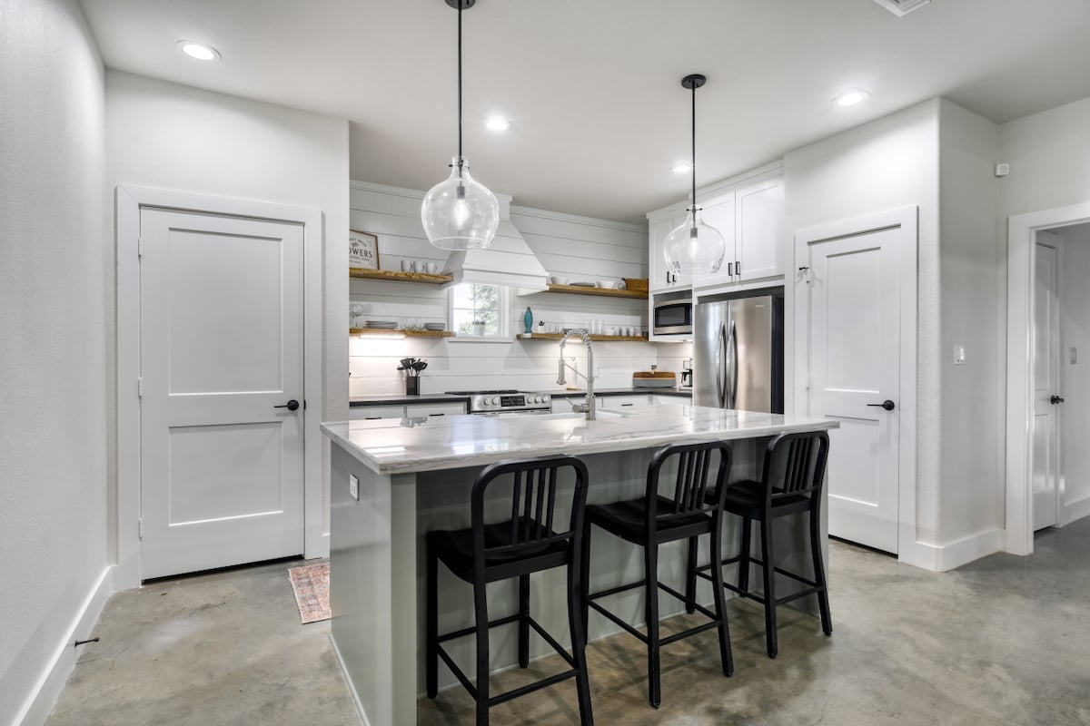 The Shirttail Bunkhouse is located on Shirttail Creek Farm, a working regenerative farm outside of Brenham, TX. Check out our IG @shirttailcreekfarm The Shirttail Bunkhouse is the perfect spot to get away from the city and decompress in the country. Sip your morning coffee from the porch as the farm gets going every day. In the evening grill some steaks out back or head into downtown Brenham to check out several of the great spots our town offers!