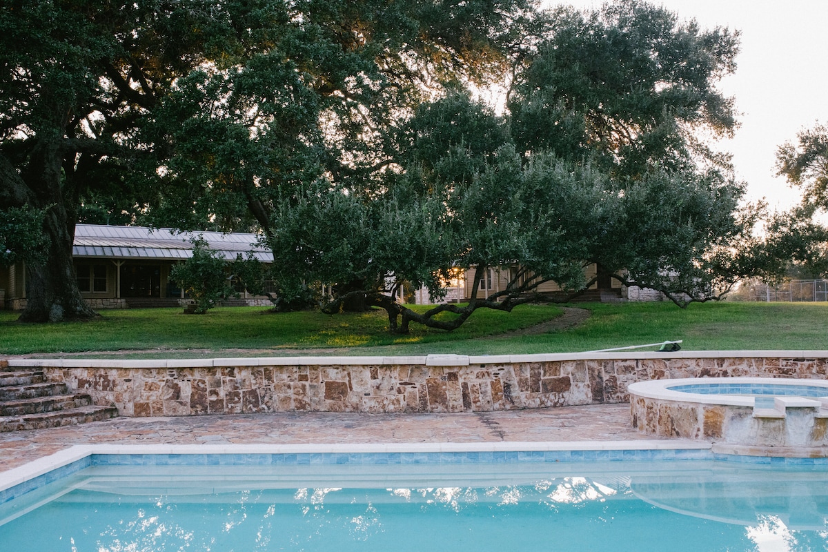 Discover the ultimate Texan getaway for family and friend groups alike at the Union Hill House! This Round Top-area compound offers 5 bedrooms and 5 full baths on 5 sprawling acres with an outdoor hot tub. Perfect for groups of up to 12, this property is just a short drive from Houston or Austin. Indulge in the chef's kitchen, cozy up by the outdoor fire, or take a walk in the lush green fields. The Union Hill House is the perfect escape. Book your stay today!