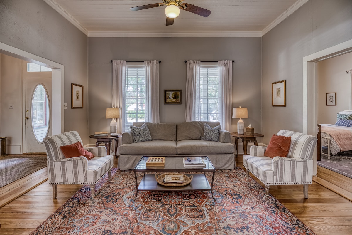 Welcome to your vibrant and antique-inspired Burton getaway! This charming historic house blends character with custom touches, creating a unique and unforgettable retreat. - 10 minutes from Round Top, festivals, shopping, and antiquing. - Spacious outdoor area, shaded by century-old oak trees - ideal for coffee or evening drinks. -Modern comforts, a fully equipped kitchen with countryside views. This charming getaway blends comfort and convenience, making it the perfect for your getaway!