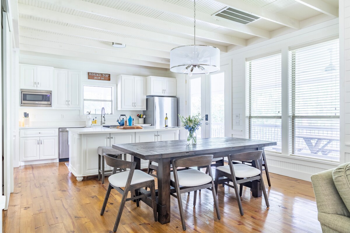Welcome to your vibrant and antique-inspired Burton getaway! This charming historic house blends character with custom touches, creating a unique and unforgettable retreat. - 10 minutes from Round Top, festivals, shopping, and antiquing. - Spacious outdoor area, shaded by century-old oak trees - ideal for coffee or evening drinks. -Modern comforts, a fully equipped kitchen with countryside views. This charming getaway blends comfort and convenience, making it the perfect for your getaway!