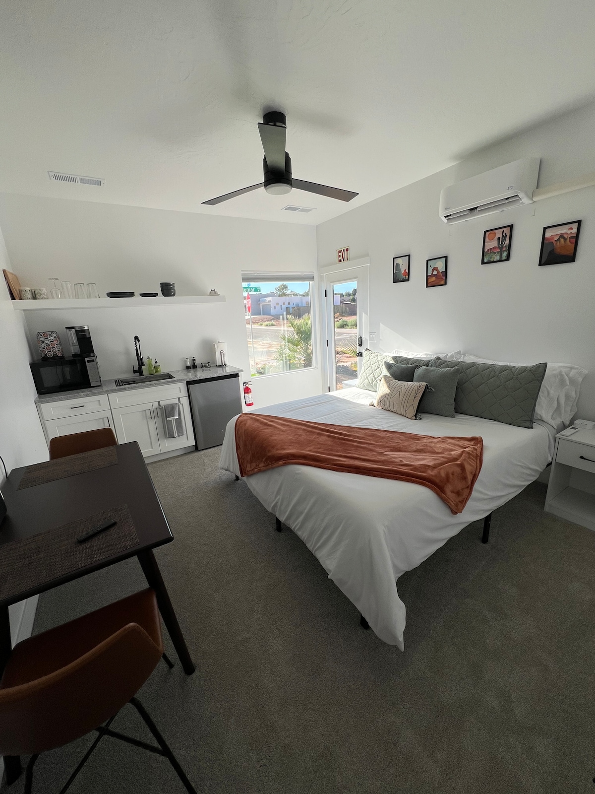 Your Southern Escape close to Zion National Park, Sand Hollow Lake, Snow Canyon, and Tuacahn, this cozy place has one bedroom and a pull out couch that makes into a queen bed in the living area for extra sleeping and a queen air mattress as well. Right off the freeway and just two minutes to Walmart and plenty of shopping. Great stop on your way to Bryce Canyon, the Grand Canyon, Lake Powell, Horseshoe bend, Monument valley, and Arches National park.