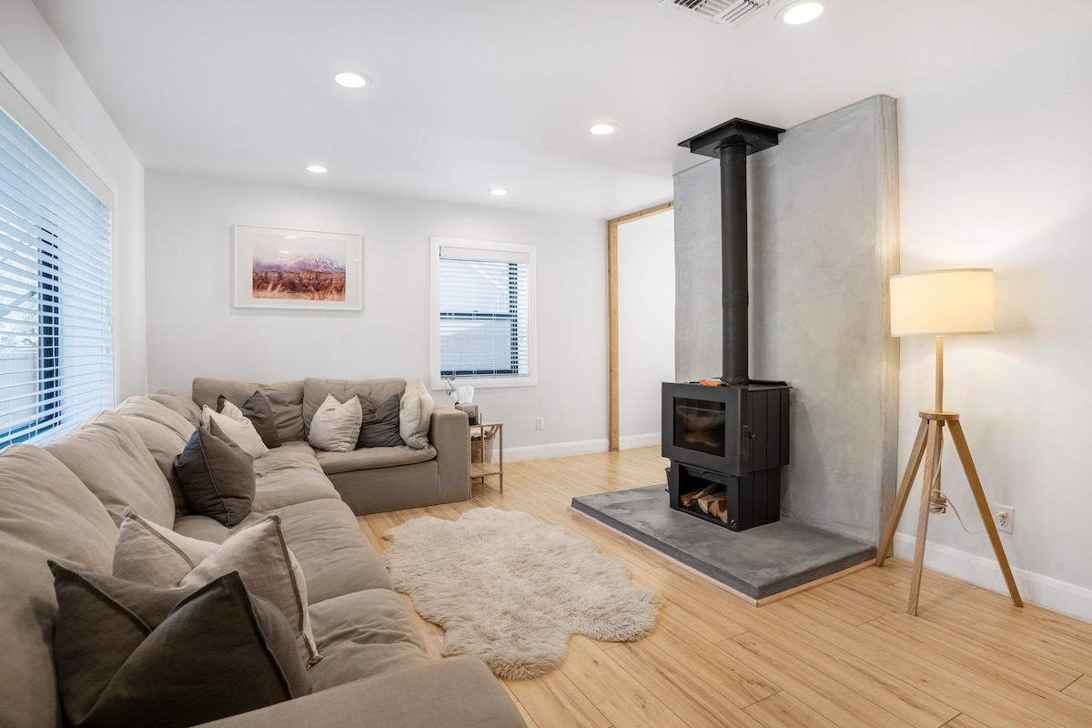 The Ark is a unique tiny with every convenience built in. Aptly named after the classic biblical story of ancient times, this tiny home really has it all! Kitchen appliances, a large bathroom (bathtub / shower), a beautiful bay window with fantastic views, a cozy loft, reverse osmosis drinking water, an office desk/mud room, washer/ dryer, TV, Wifi, Hot Tub, Fire Pit, and all the outdoor amenities to go along with it! The Ark is the perfect tiny for the ultimate Zion getaway.