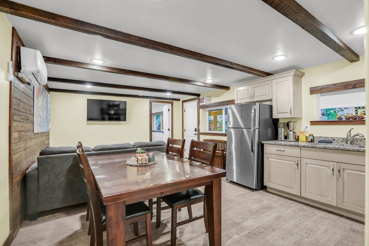 Stay in our beautiful private guest house, featuring a large deck that is great for outside dining, stargazing, relaxing, and enjoying the amazing views of the area. The home features a smart TV, stereo, fireplace, BBQ, and WiFi. The full kitchen includes a microwave, Keurig, refrigerator, stovetop, and oven. We have everything you need for a great stay. Located close to many of Utah's National Parks with access to amazing mountain biking and hiking.