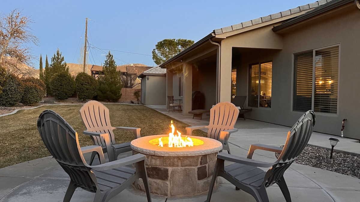 Adventure awaits in the beautiful Utah Desert at 'Mesa Verde'—just 25 mins to Zion National Park. This is the perfect home-base for those looking to spend time in the outdoors—hiking, mountain biking, swimming, off-roading, photography, and more! Explore the red cliffs and emerald pools at the many nearby state and national parks by day. Then enjoy evening cocktails on the back patio amidst picturesque sunsets and views of the Pine Valley Mountains! This is the place to play hard and rest well!