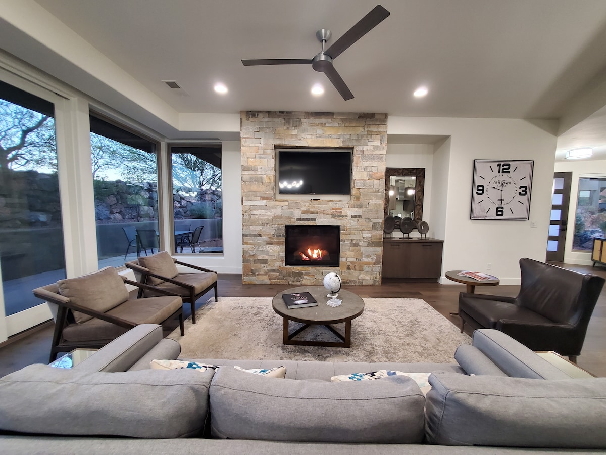 Come enjoy a relaxing getaway in our new Luxury Home located at the base of Snow Canyon State Park in the exclusive Encanto Resort gated community. Enjoy the tranquility of the surrounding red rock mountains, relax in the spa or heated pool with panoramic red rock views or unwind and enjoy a glass of wine by the fire while enjoying the serenity of the backyard waterfall. You are only minutes away from Black Desert Golf Resort, hiking, biking, Red Mountain Spa, and the Tuacahn Amphitheater.