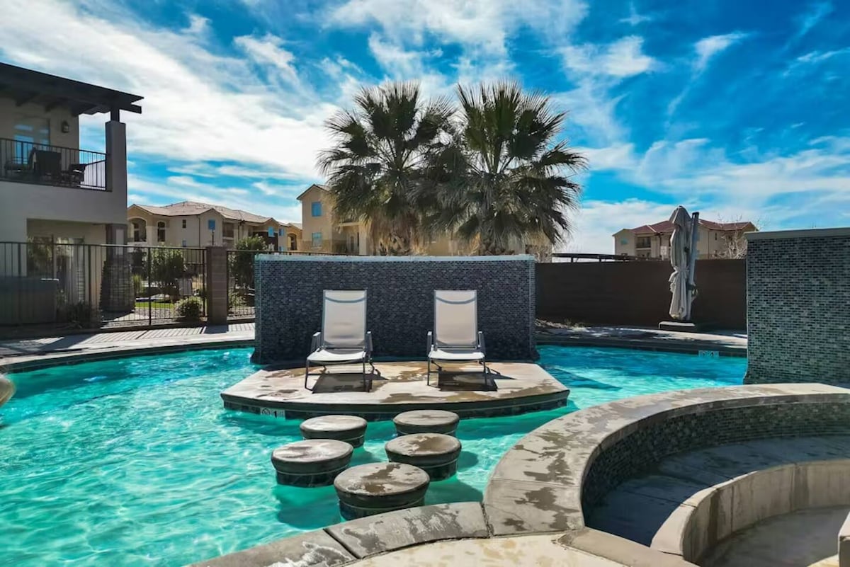 Don’t book a place out in the boonies! Next to Las Palmas. Book our modern corner main floor condo with no stairs and tons of windows! We are next to state parks, (Zion) Tuacahn Theatre, Walmart, Bear claw poppy trailhead for hiking/biking trails, 100mi UTV Riding and we are also next to The Grip Fitness - Ninja Warrior Obstacles and a Spa! Our condo is a ground unit so you have large patio that sits between palms! Walk out the back to a grass area! Fiber Wifi, Luxury Massive pool/tub Pickleball