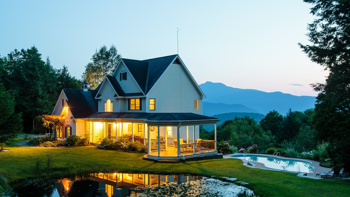 As featured in Conde Nast Traveler (1/21/22) Peaceful & impeccable retreat with a 180 degree view of Vermont's tallest mountains. Near Vermont's premier skiing, hiking, & outdoor adventures, you’ll love the sunset views and cozy atmosphere (huge sheepskin in front of the fireplace) and the attention to detail (live-edge wood details, spa-like bathroom). This is an incredible retreat for couples and families, adventurers and business travelers alike!