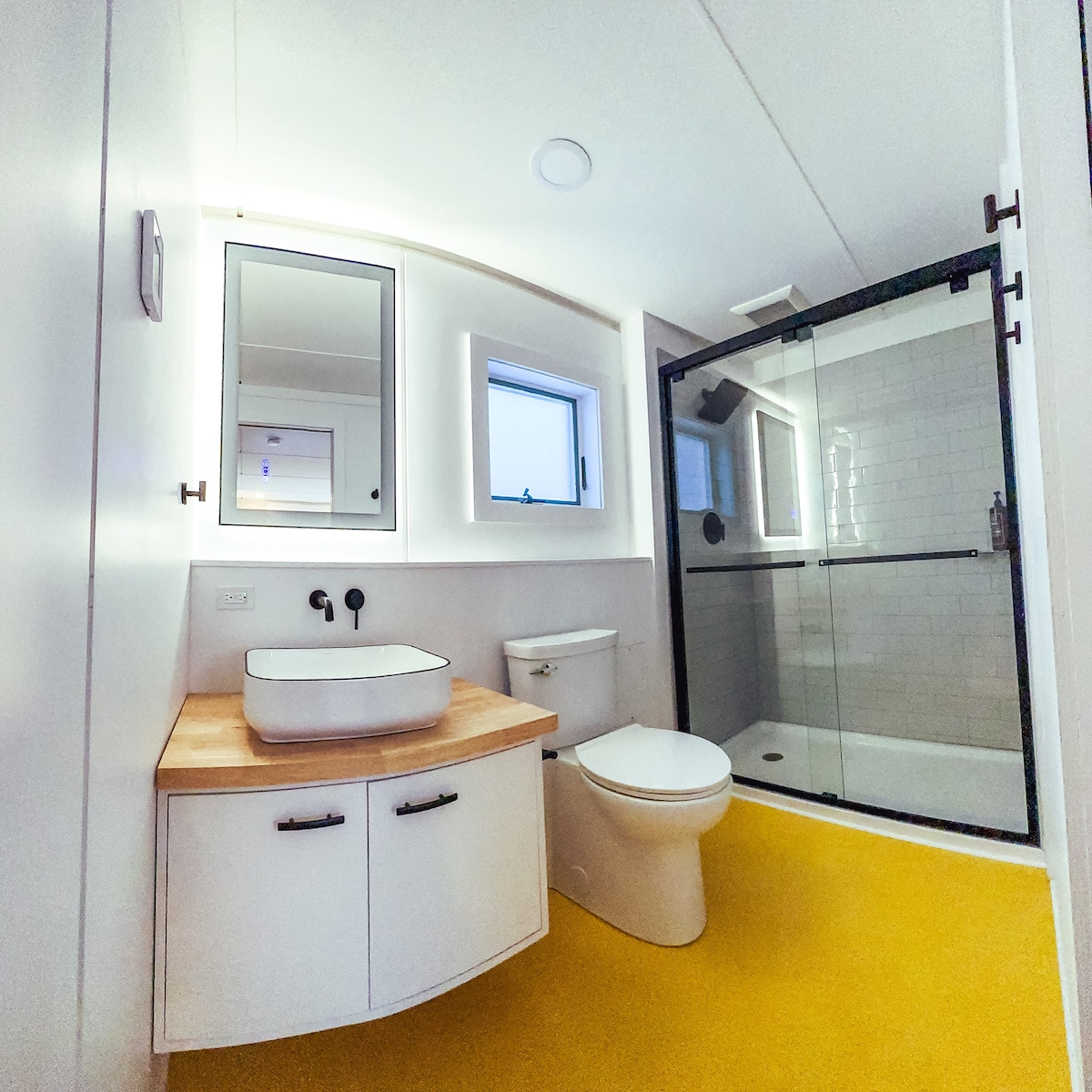 Our Ledges King room features one king bed with a custom build headboard, writing desk, gear closet, sitting chair, loft reading nook with a twin size daybed, and a deck. The bathroom features a shower/tub combo, single sink vanity and bath products by Ursus Major. Please note that none of our rooms have televisions (a very intentional choice!) but there is fast and dependable wi-fi throughout the property.