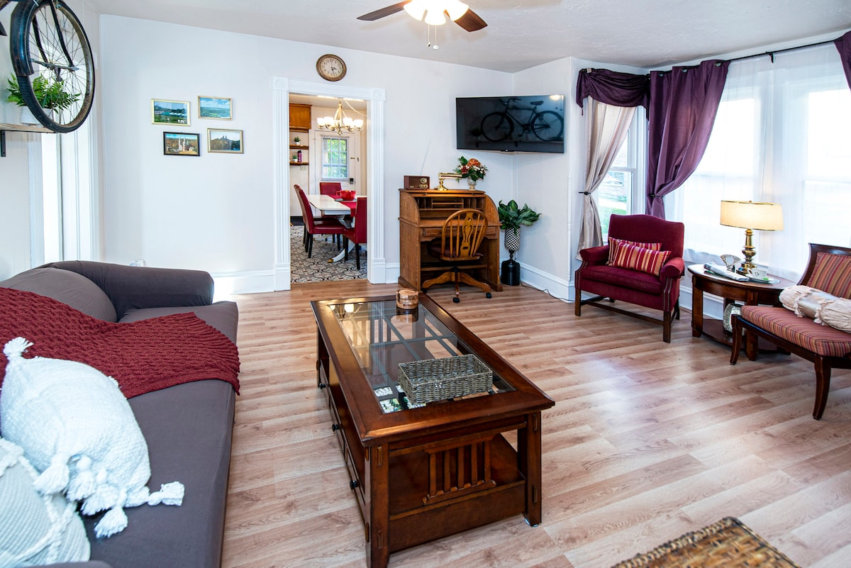 Welcome! Gather and enjoy an abundance of area activities & amenities in this recently renovated, spacious apartment. Large cozy beds. The perfect place to call home during your stay! All the amenities you need! Located in the immediate downtown area, walking distance to area shops, dining + local attractions + Wisconsin Automotive Museum. A short drive to "Insta-worthy" Holy Hill, Erin Hills, Pike Lake, Slinger Speedway, Lapham Peak and Little Switzerland. Free onsite parking and WiFi.
