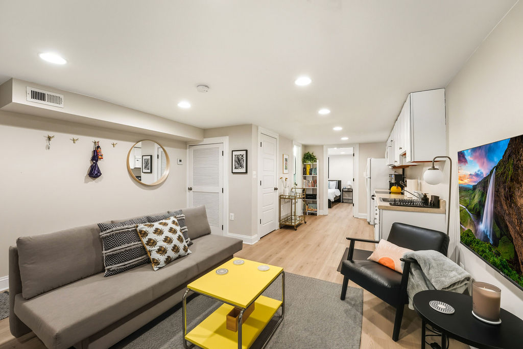 Imagine being just a couple of blocks from the U.S. Capitol Building, the Metro, and a quick stroll to the National Mall-this is YOUR spot! This modern English basement apartment is on one of the best streets in Capitol Hill. Step outside your front door and enjoy local parks, restaurants, and shops all within walking distance. Fully equipped kitchen for meals at home and plenty of room to relax after a day of exploring the city, you'll feel right at home in this Capitol Hill gem.