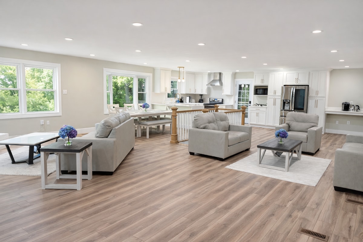 RARE FIND — Main-Level Bedroom & Bath with No Steps! Welcome to your stylish D.C. retreat! This fully renovated 5-bedroom, 4-bathroom home offers 3,500 sq ft of open-concept living, just 3 minutes from the Metro and 10 minutes from the White House. Enjoy free street parking. Perfect for families or business travelers with a main-floor bedroom, chef’s kitchen, double living rooms, fast Wi-Fi, and smart TVs. Book your stay today and experience D.C. in comfort and style.