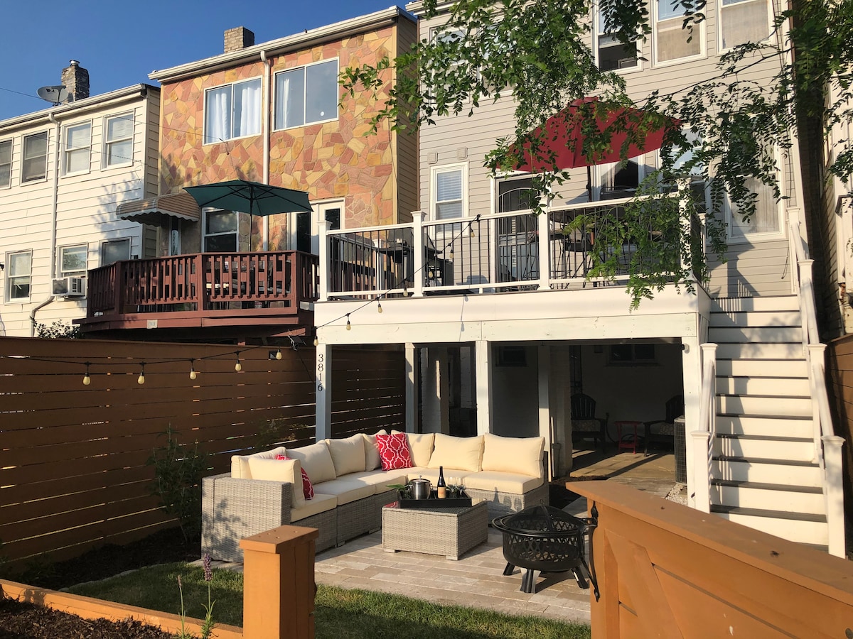 Come stay in our renovated, solar-powered basement apartment less than 2 blocks from the metro! Our garden-level apartment is complete with a private entrance, private parking space, kitchenette, full bathroom, queen-size bed, queen-size air mattress, kitchen table, sitting area, washer/dryer, closet, wifi, separately controlled heat/air and more! Best of all, enjoy a cup of coffee in the morning or a glass of wine as you wind down in our urban backyard oasis that overlooks a community garden.