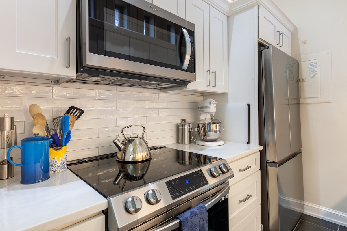 Stay in Shaw’s luxury two-bedroom showcasing Second Empire elegance. Modern kitchen boasts an air fryer oven. Private baths for each room, Nest thermostat, and in-unit laundry add comfort. Steps from the Convention Center and Mt. Vernon Square Metro, explore D.C. effortlessly. Nearby, discover historical Naylor Court, dine at Convivial, Nina May, Mariscos, or grab a bite at All Purpose Café. Groceries and pharmacy just blocks away.