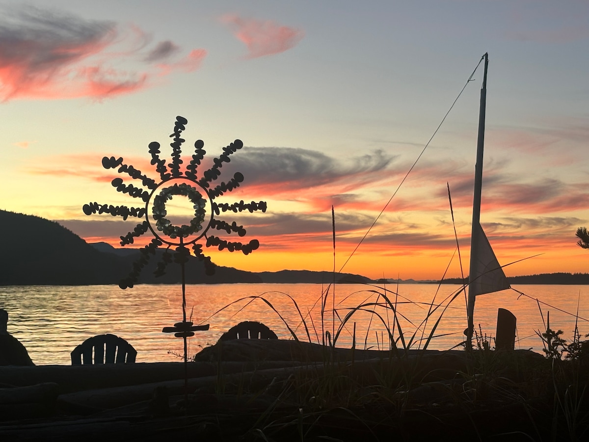 Love beach walks, sunsets, and wildlife? This island escape is for you! In April, don’t miss the Skagit Valley Tulip Festival. After a quick 5-minute ferry ride, arrive at our whimsical west-beach cottage on Guemes Island with its panoramic views and magical sunsets...perfect for relaxing, taking beach walks, finding treasures, hiking our mountain & local trails, exploring your favorite water sports, and spotting herons, seals, bald eagles, & even whales. Kids and pets welcome...mooring offered.