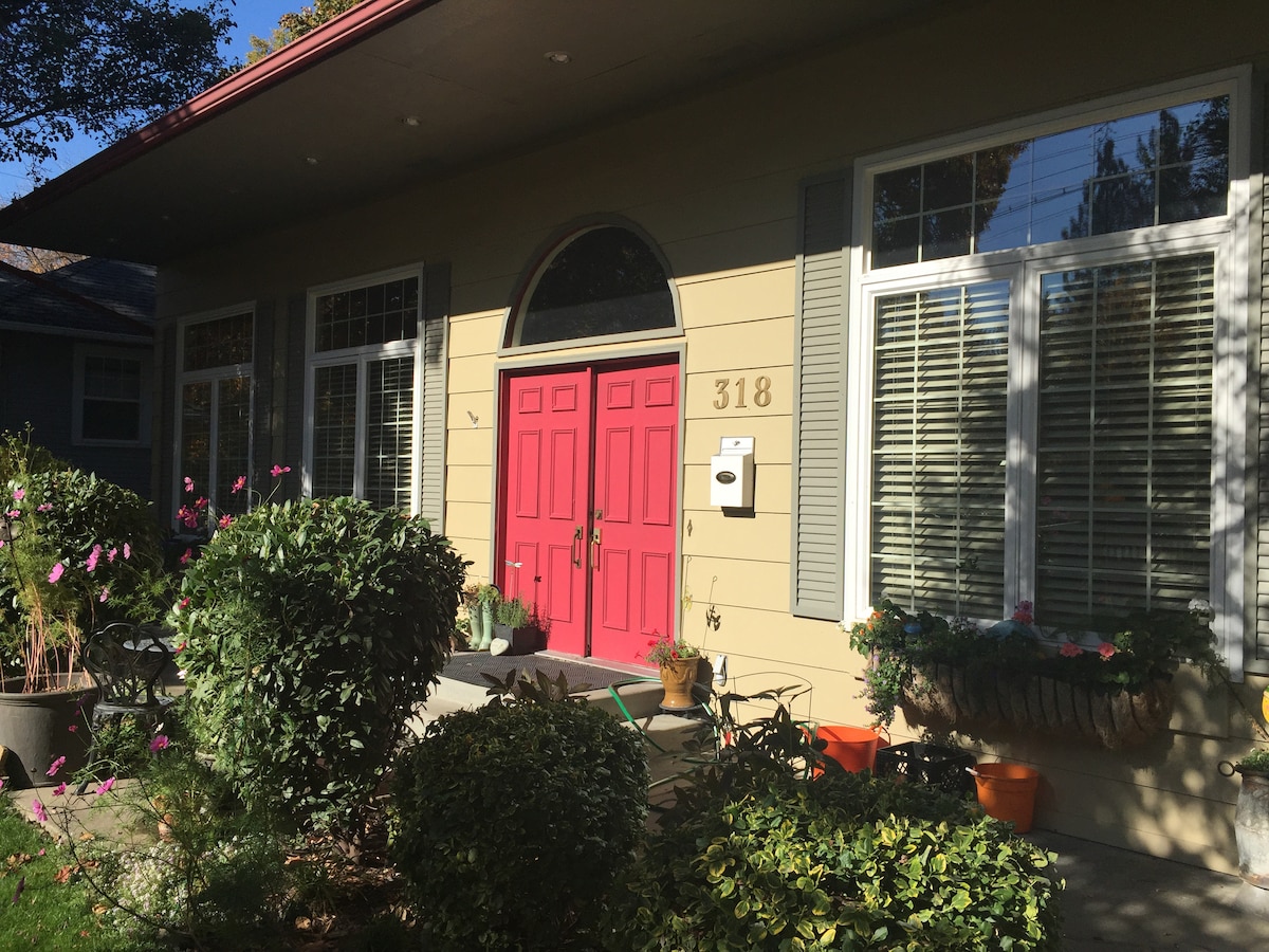 Garden level apartment with 2 sets of French doors opening into the garden. We live in a mature neighborhood, close to downtown, with beautiful areas to walk and relax. Manito Park is on my street, 90 acres, with rose, lilac, formal and native plant gardens, plus a pond with ducks. This is an ideal location for medical professionals, Sacred Heart Hospital, Medical Center and Children's Hospital are 1.3 miles way, along with Shriners, Deaconess Multicare is 1.1 mile distance..