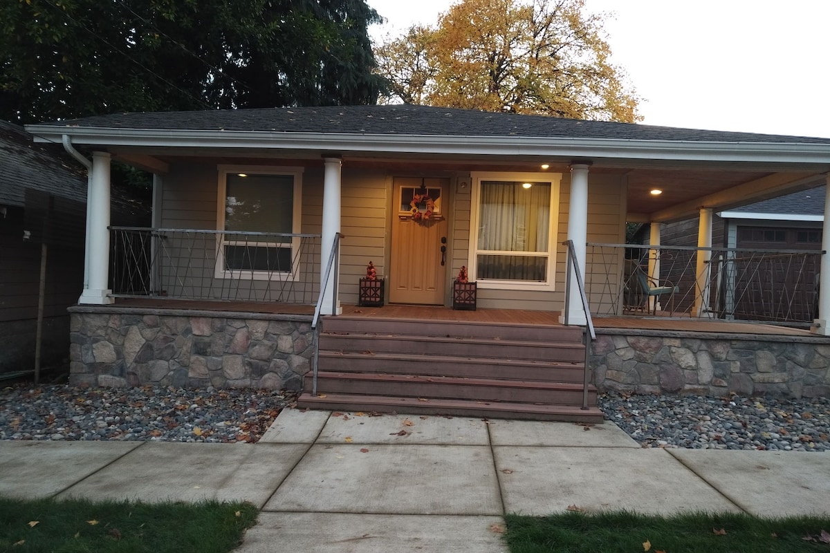 Welcome to the Lakefront Bungalow~35 miles from Mt. Rainier National Park's year-round entrance! Experience boundless hiking and exploration possibilities up at the mountain or simply relish long lazy days of lakefront living. Blending cozy home comforts with lakeside views this is your ideal escape! Perfect for solo remote workers, couples, or Really close friends;-) The Bungalow also shares the property with the Lakefront Cottage! Perfect for pairing families who want to stay in both places!