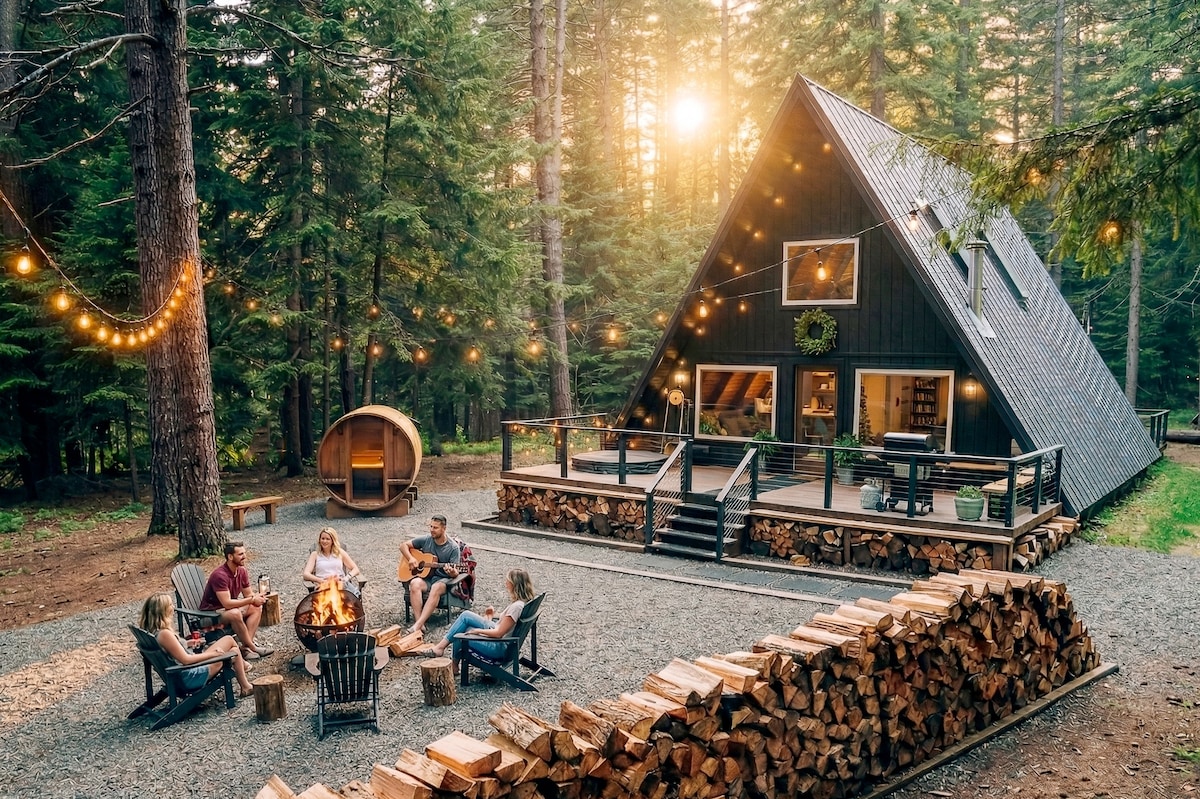 太平洋西北地区 A 字型房屋 - 带景观热水浴缸和空调