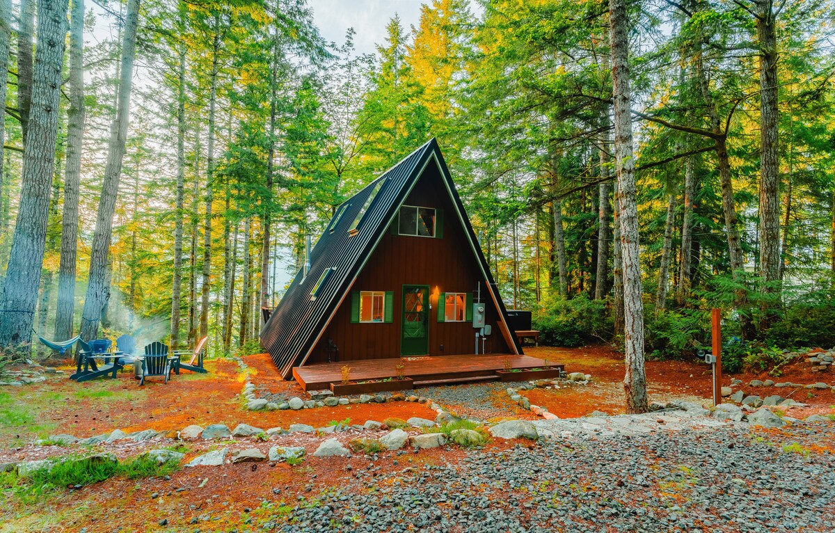 A型小屋,配备私人热水浴缸,可欣赏Hood运河美景