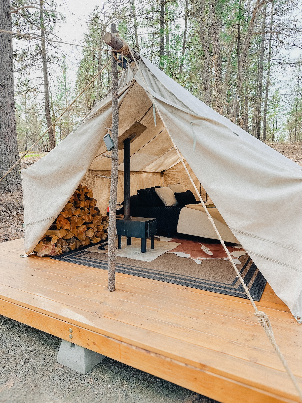 Unique canvas tent under a cedar pole structure with all amenities you would need for a “not so roughing it “ experience. Light casts dancing shadows along the tent as you settle into a king size bed with bamboo, linen sheets and feather blankets . There are extra wool blankets for you to wrap your self in as you sit on the covered deck to watch the stars and relax after a day of adventures and listen to the waves crashing as you enjoy a cup of Starbucks coffee from the Nespresso maker.