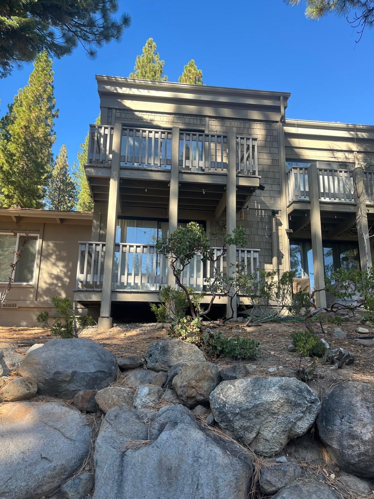 Nestled in the pines just a minuscule walk you are at the beach or skiing. This extraordinary condo offers guests a full Tahoe experience in a convenient location in the heart of IV. Enjoy the hiking trails, skiing, biking or the extraordinary golfing minutes away. This elegantly decorated well-appointed north shocondo is made for couples or friends who want to experience some real Tahoe adventure, romance and fun while also embracing the tranquility of the mountains. Guests must provide phone #